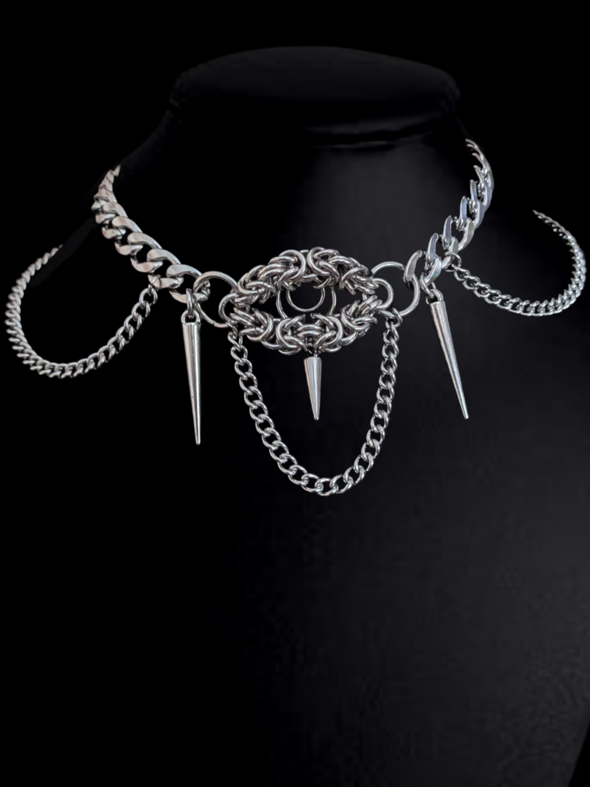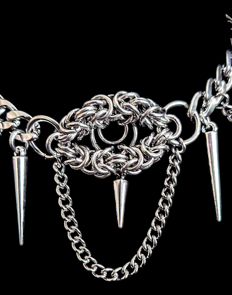 Handcrafted stainless steel & hypoallergenic Gothic chain mail necklace.