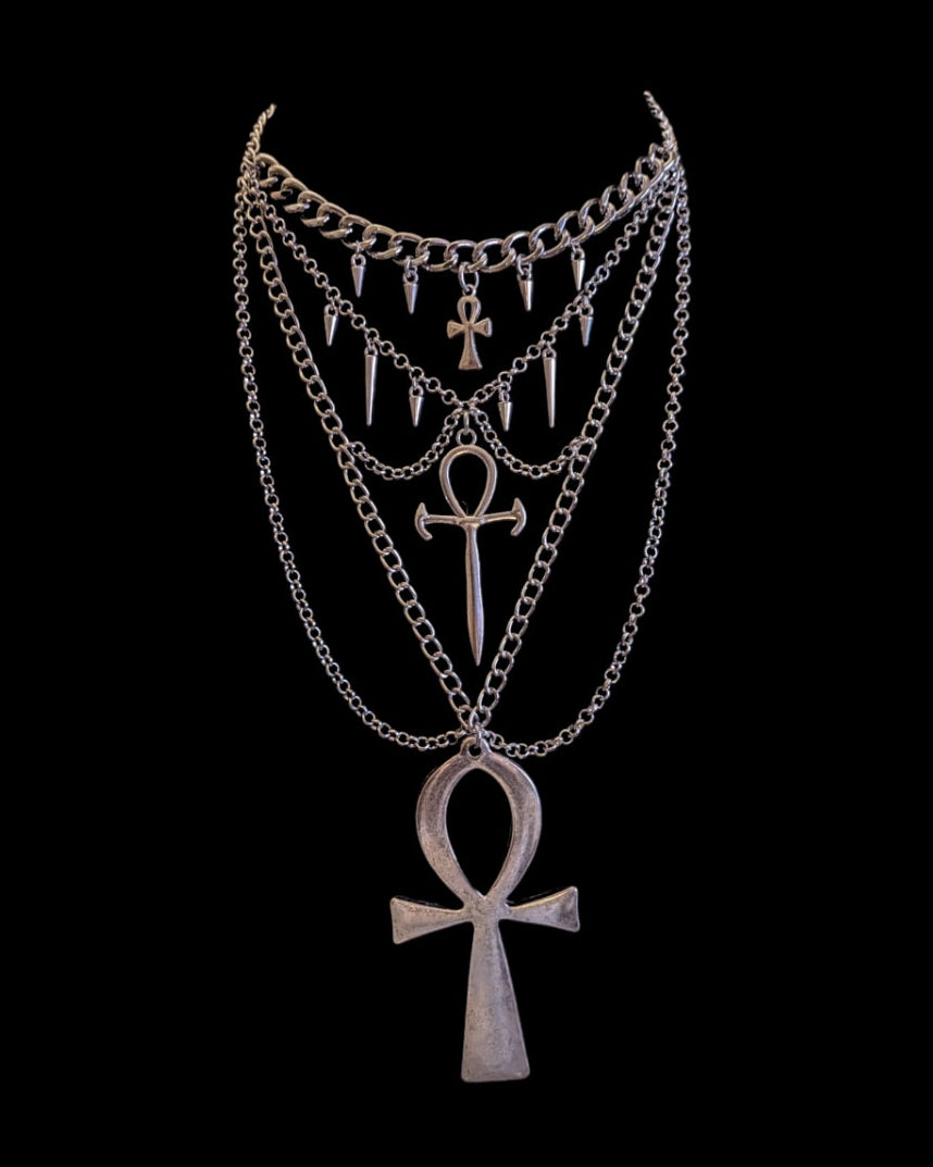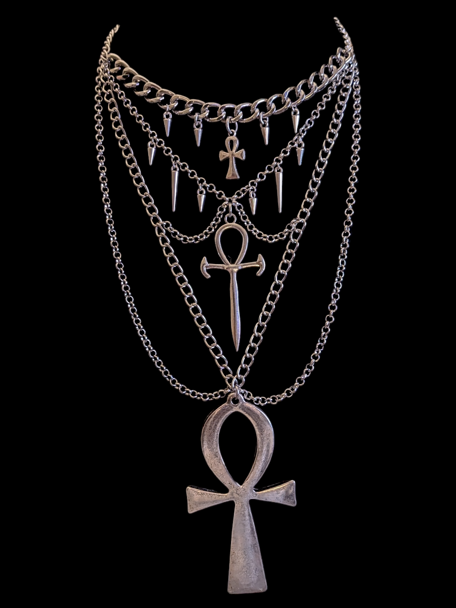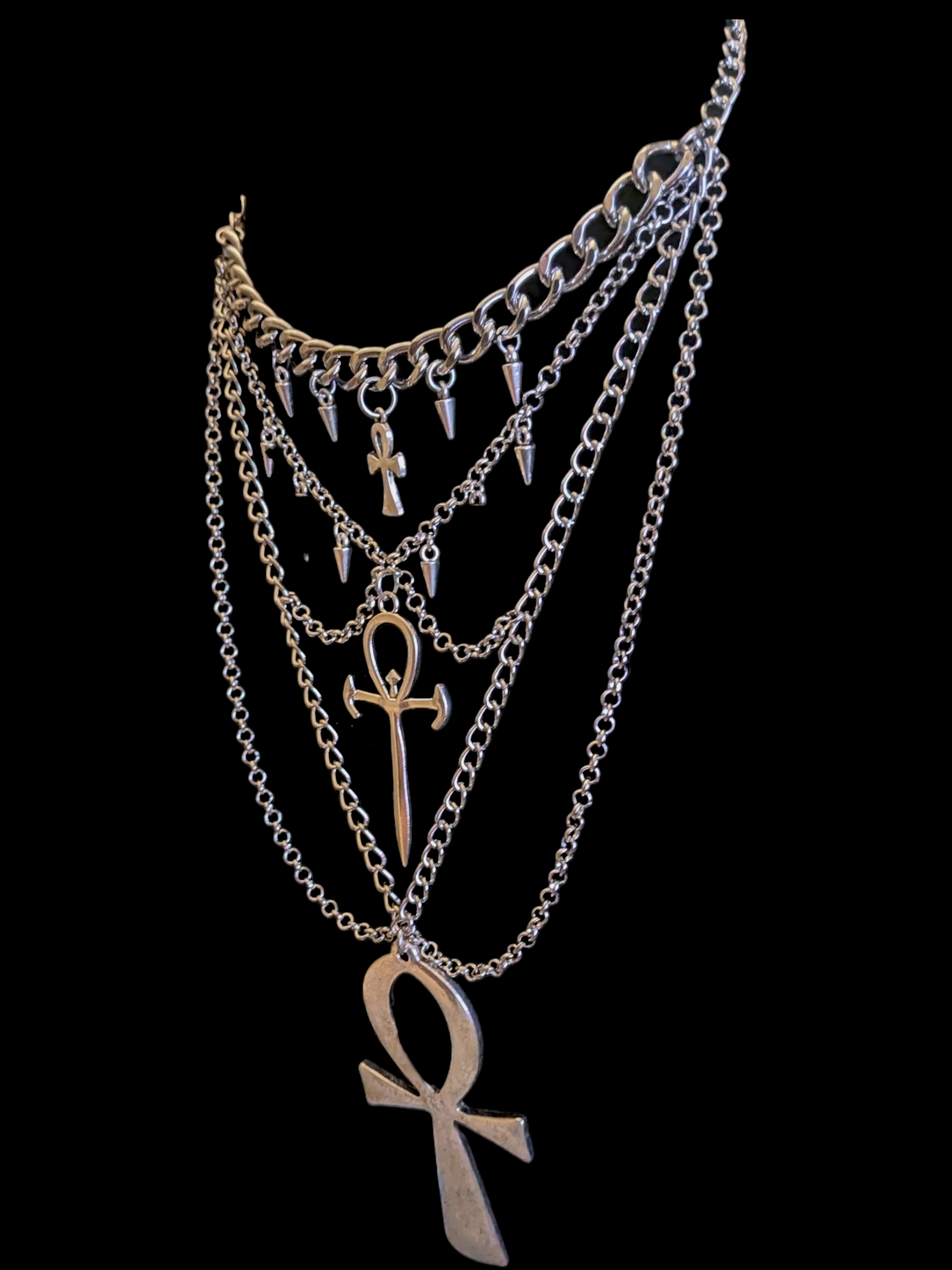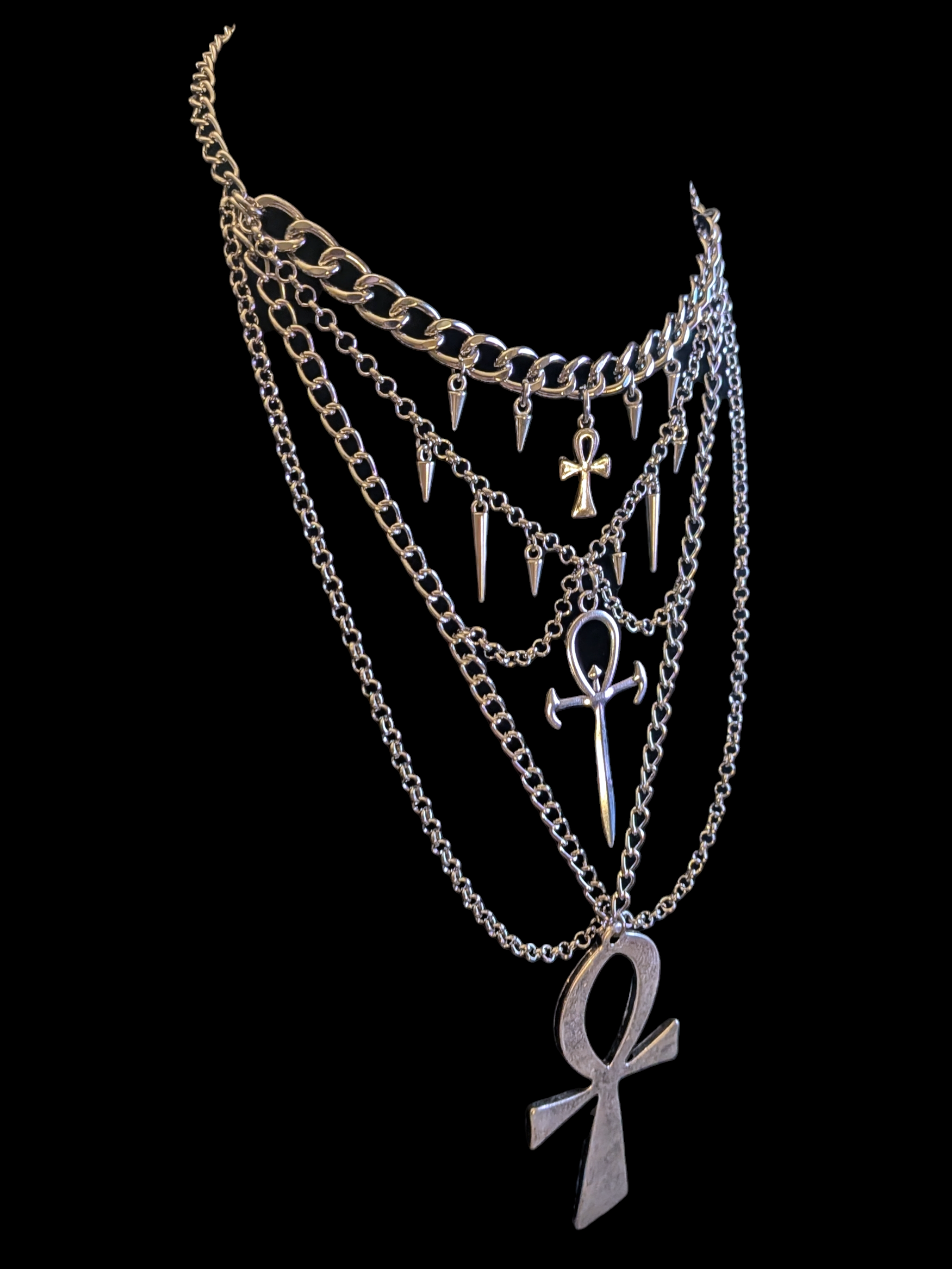 Handcrafted Gothic layered necklace. Chain is made from durable nickel free rhodium plated iron, and it is adjustable! REPLICABLE