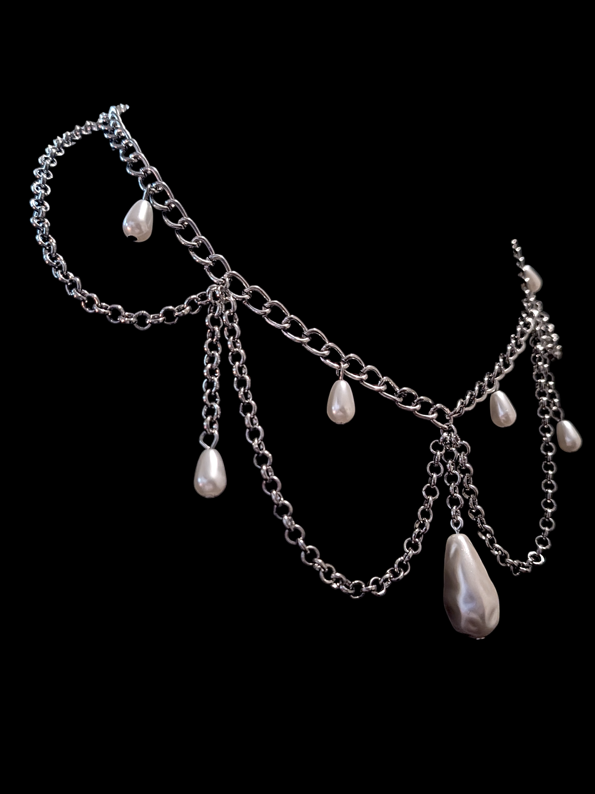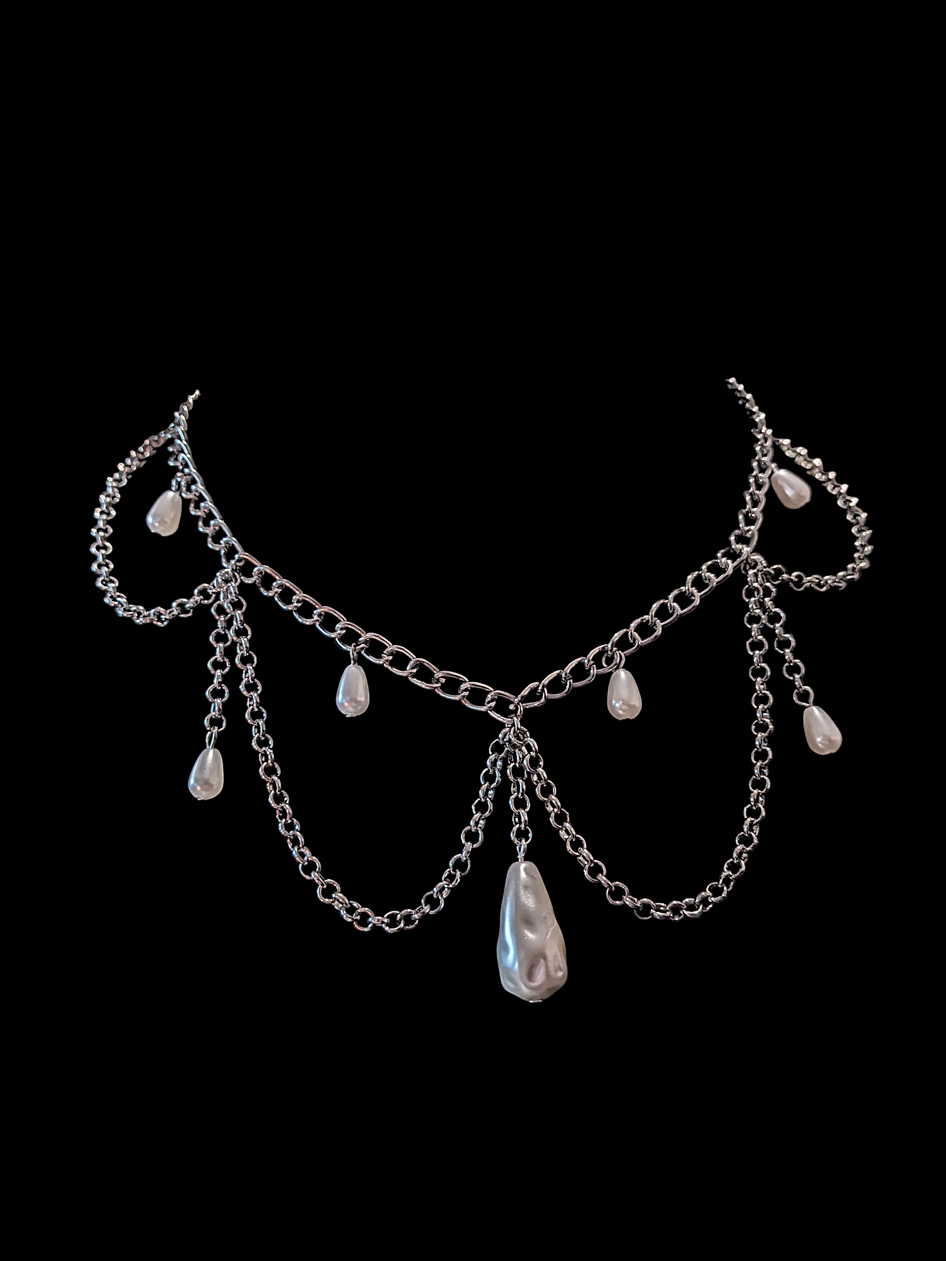 Handmade durable rhodium-plated chain necklace decorated with pearls.