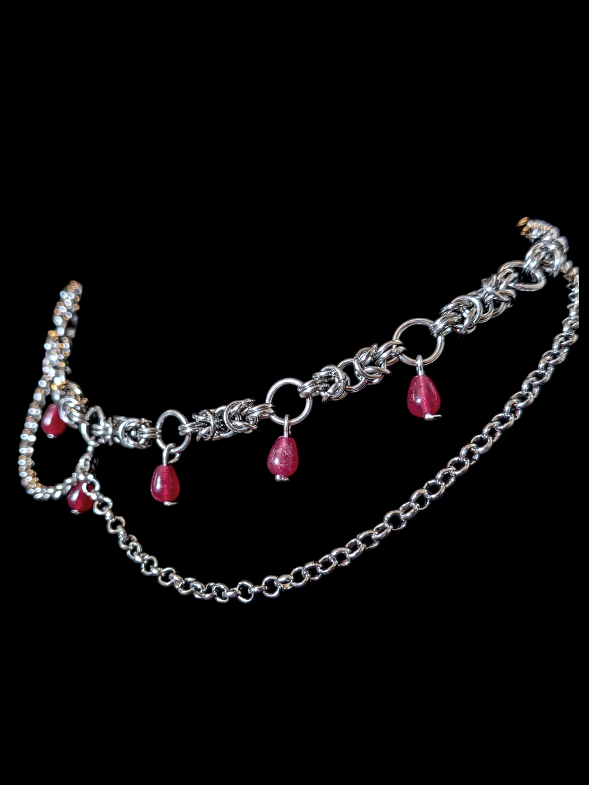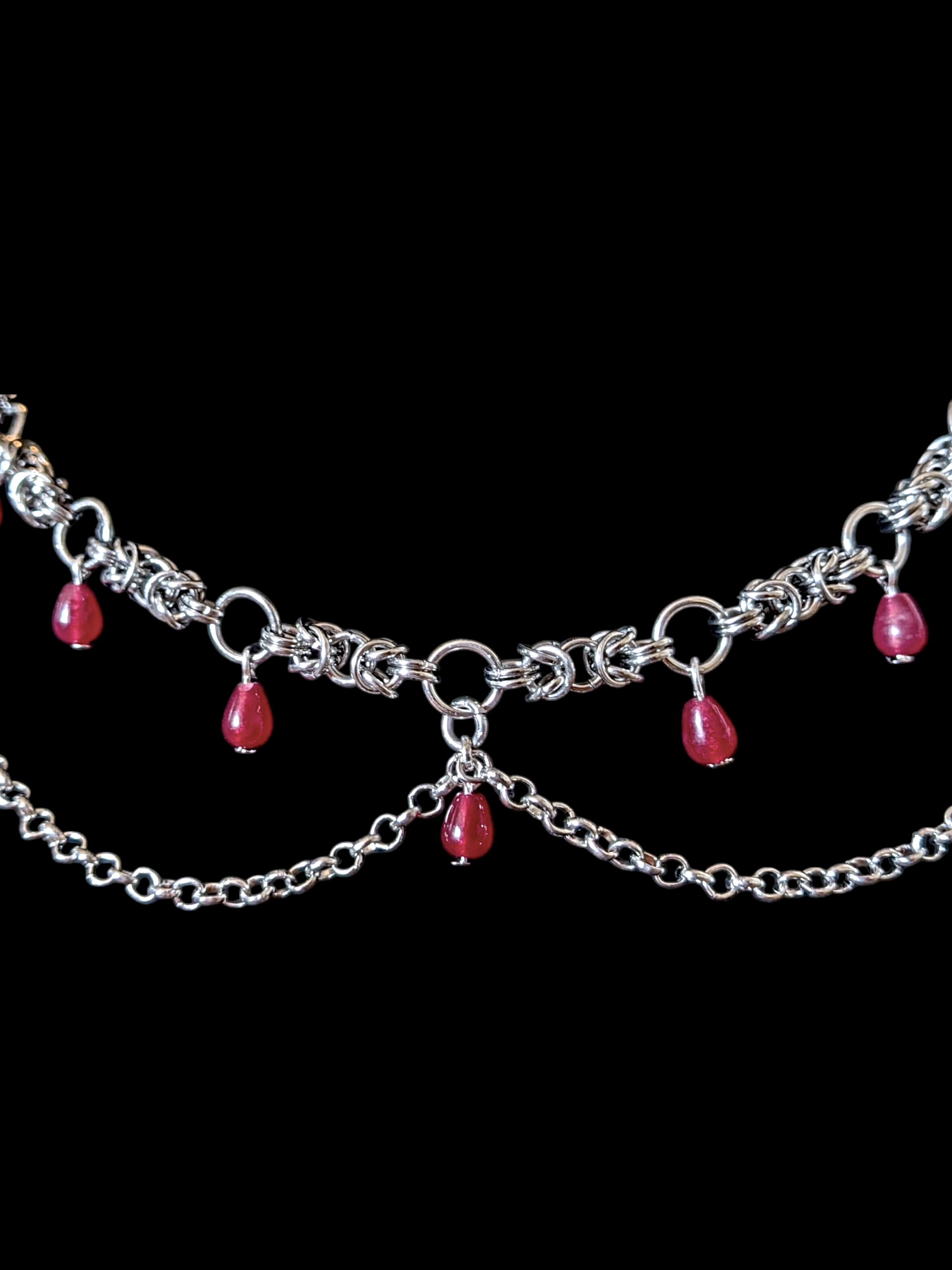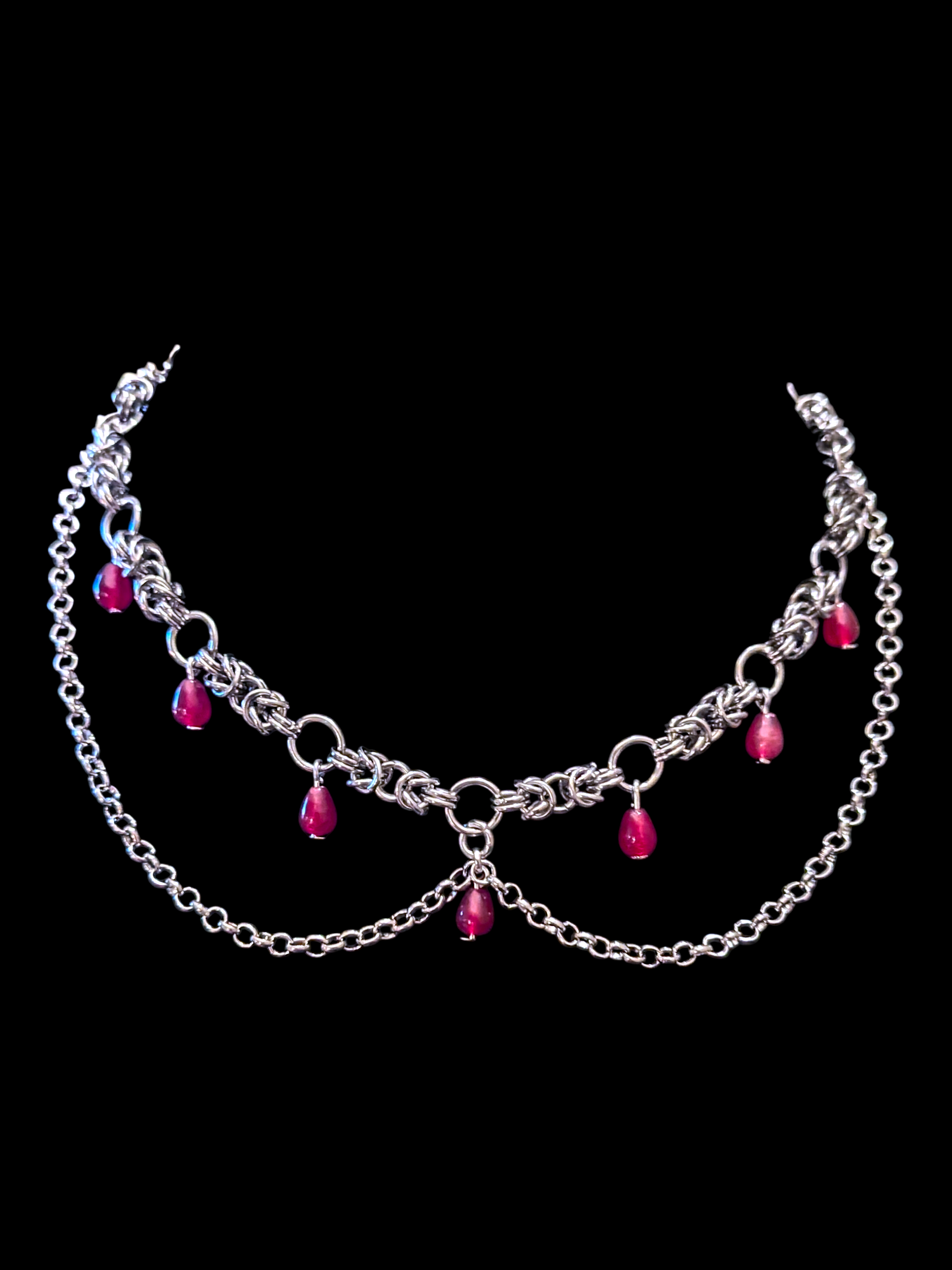 Stainless steel Byzantine chain mail necklace. The small chain is rhodium-plated and nickel free. Necklace is adjustable.