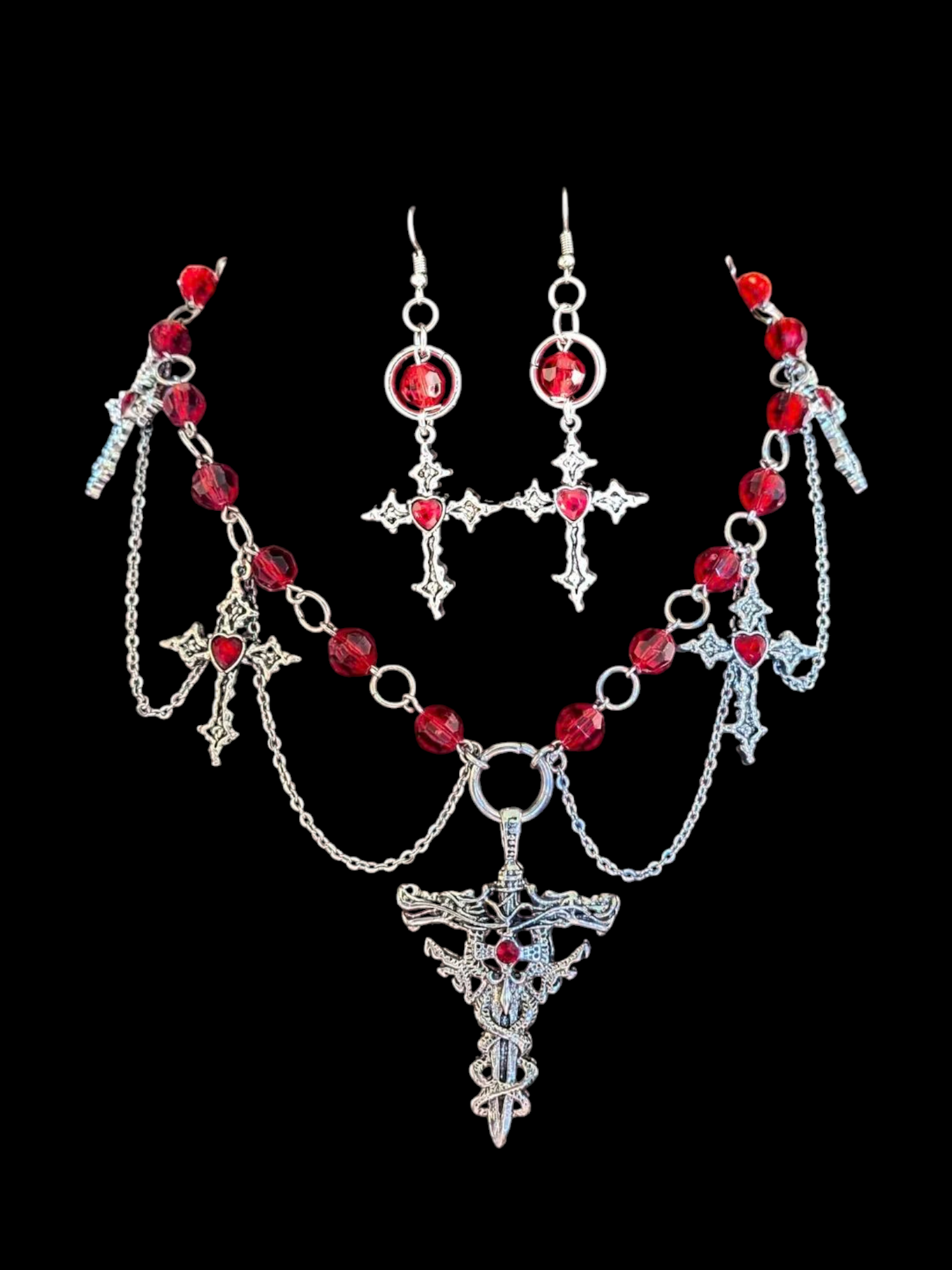 REPLICABLE Handcrafted red and silver earrings - *NECKLACE NOTE INCLUDED* - Can be paired with matching necklace